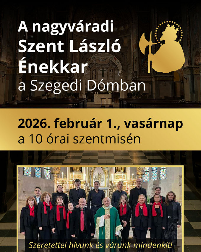 Templomunkban február 1-jén, vasárnap a 10 órakor kezdődő szentmise zenei szolgálatában a nagyváradi székesegyház kórusa, a SZENT LÁSZLÓ ÉNEKKAR közreműködik. Mindenkit szeretettel hívunk és várunk erre a szép, ünnepi liturgiára!